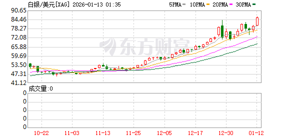 周一(1月12日)纽约时段,贵金属价格大幅走强,现货黄金和现货白银价格双双升破纪录高位,其中银价单日涨幅一度超过7%。